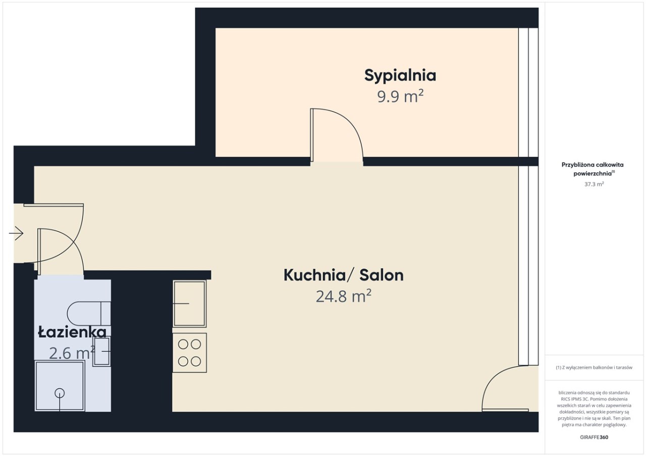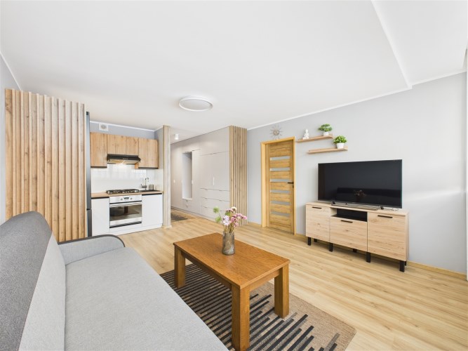 • Przestrzeń 37,58 m2 zaprojektowana z myślą o funkcjonalności i wygodzie.