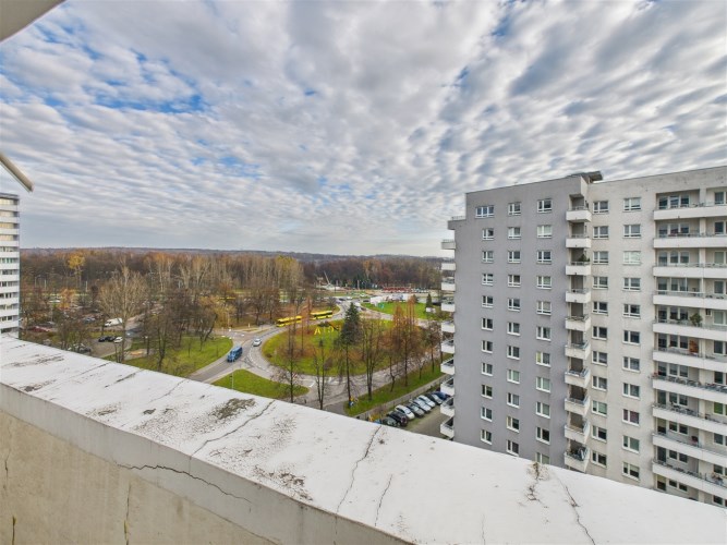 • Mieszkanie na 10. Piętrze z loggią, skąd roztacza się widok na Park Śląski.